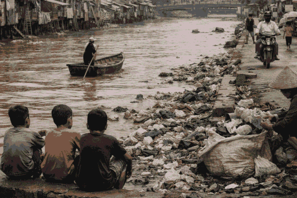 Ilustrasi sampah menumpuk di sungai, Foto: Dok. indonesiana.id